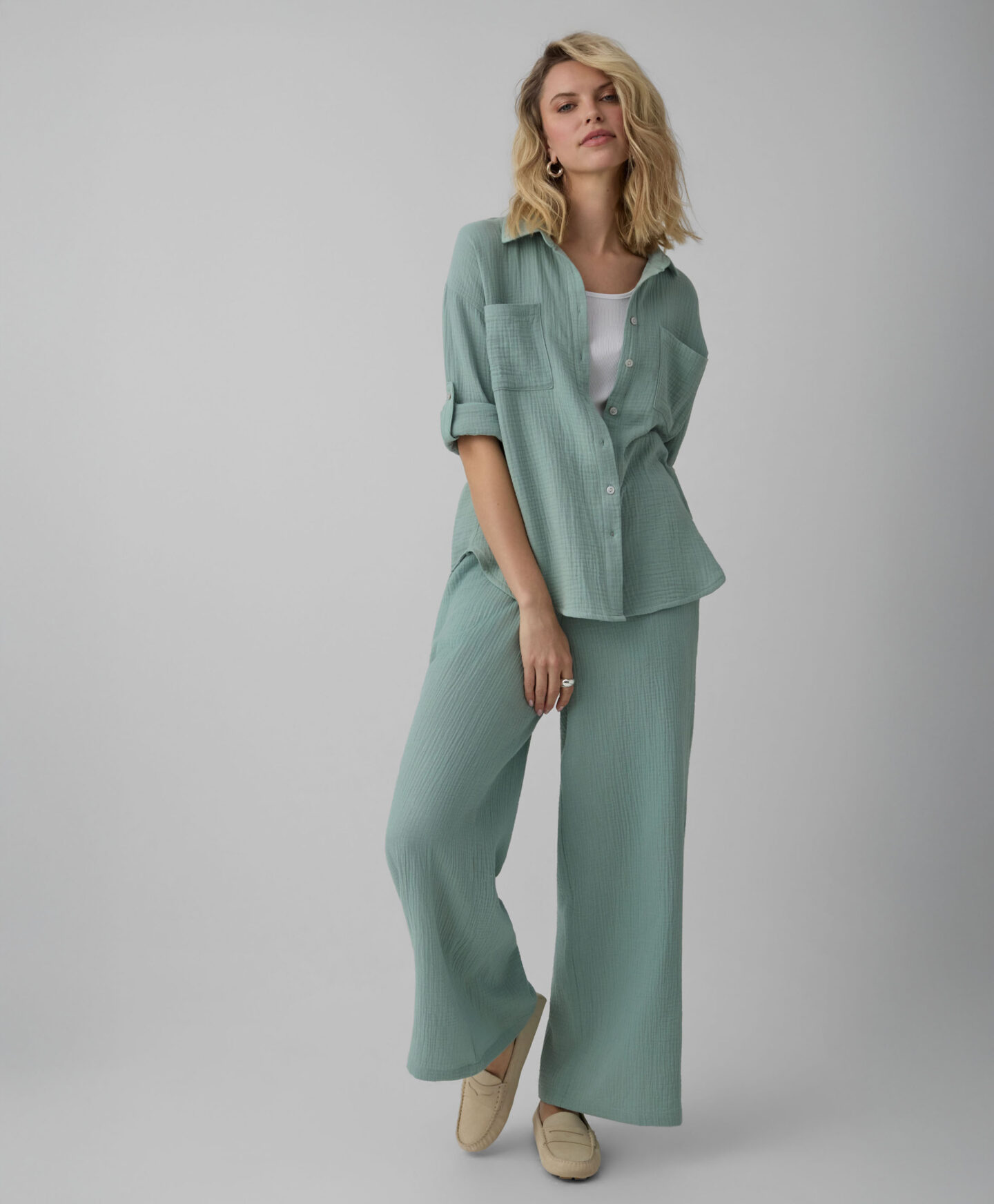 A természetes anyagok és az elegáns stílus szerelmesinek készült. Az egész napos kényelmet a légáteresztő, puha anyaga biztosítja. Párosítsd szoknyával vagy nadrággal, mindkét esetben garantált a divatos megjelenés. A kollekcióban a hozzá illő nadrágot is megtalálod.