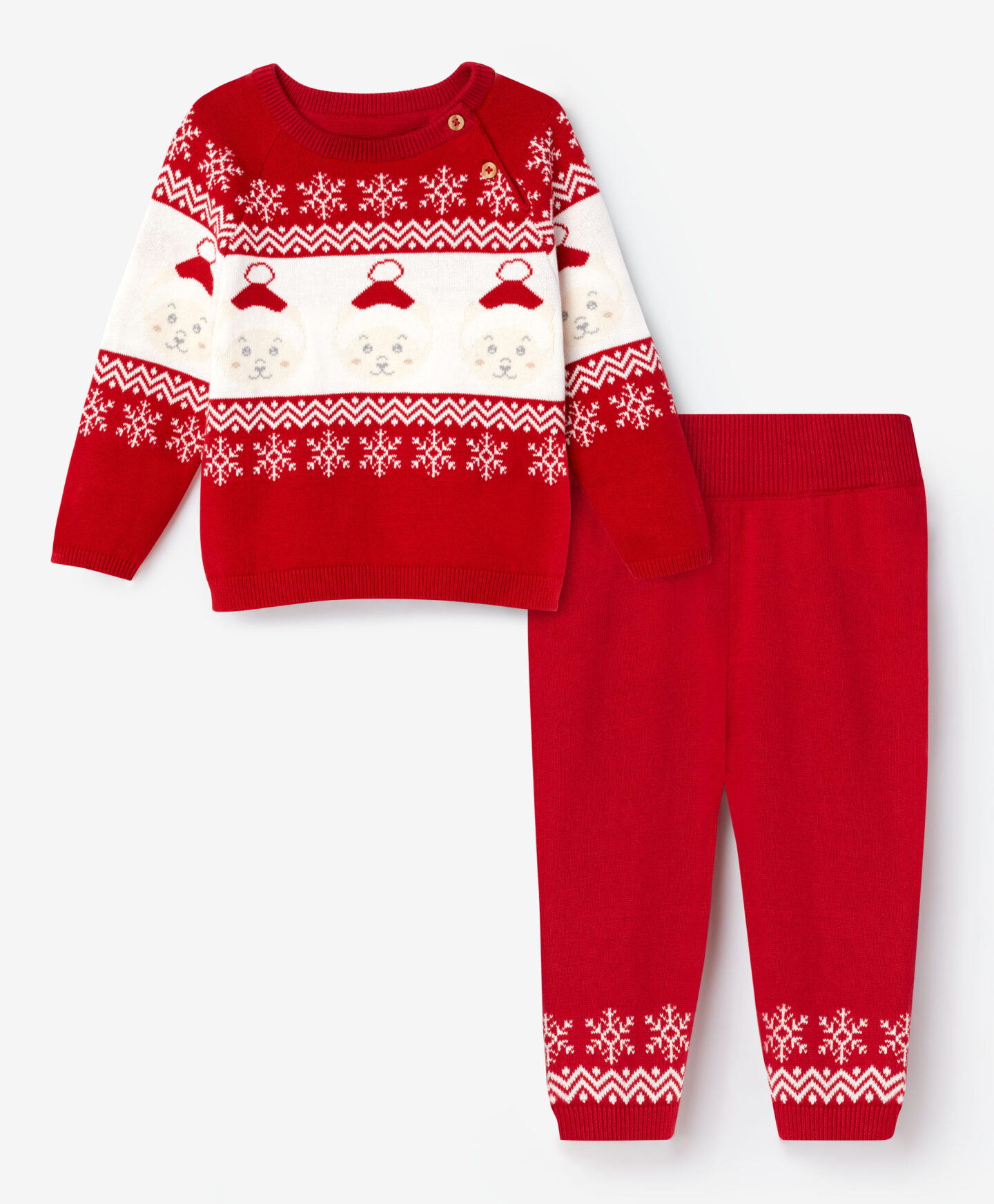 Ez a 100% pamutból készült együttes kisfiúknak egy kényelmes, gombos nyakú pulóverből és egy nadrágból áll. Természetes anyagának köszönhetően gyengéden körülöleli a baba érzékeny bőrét, és melegséget biztosít a hideg téli napokon.
