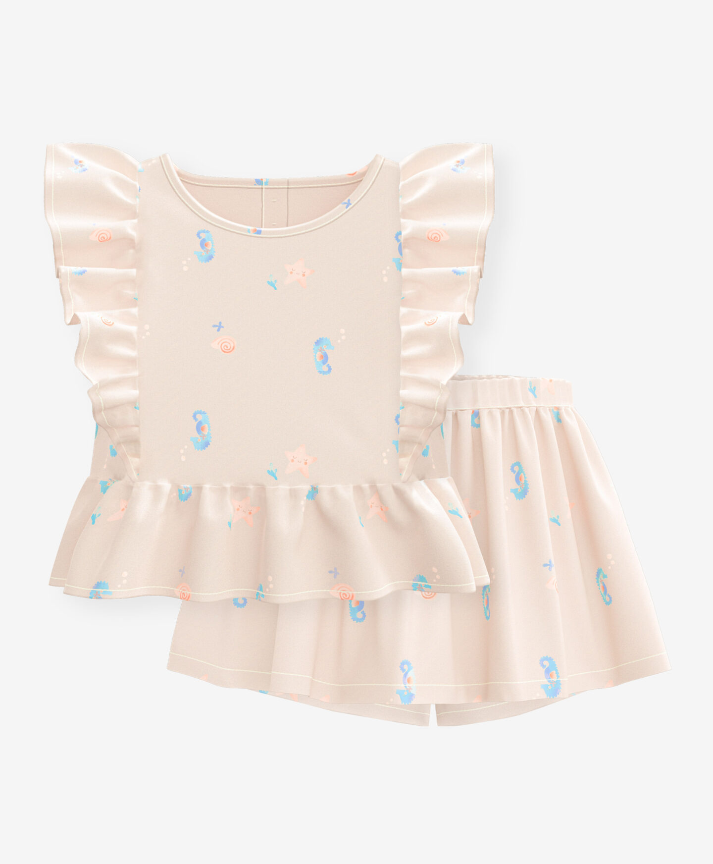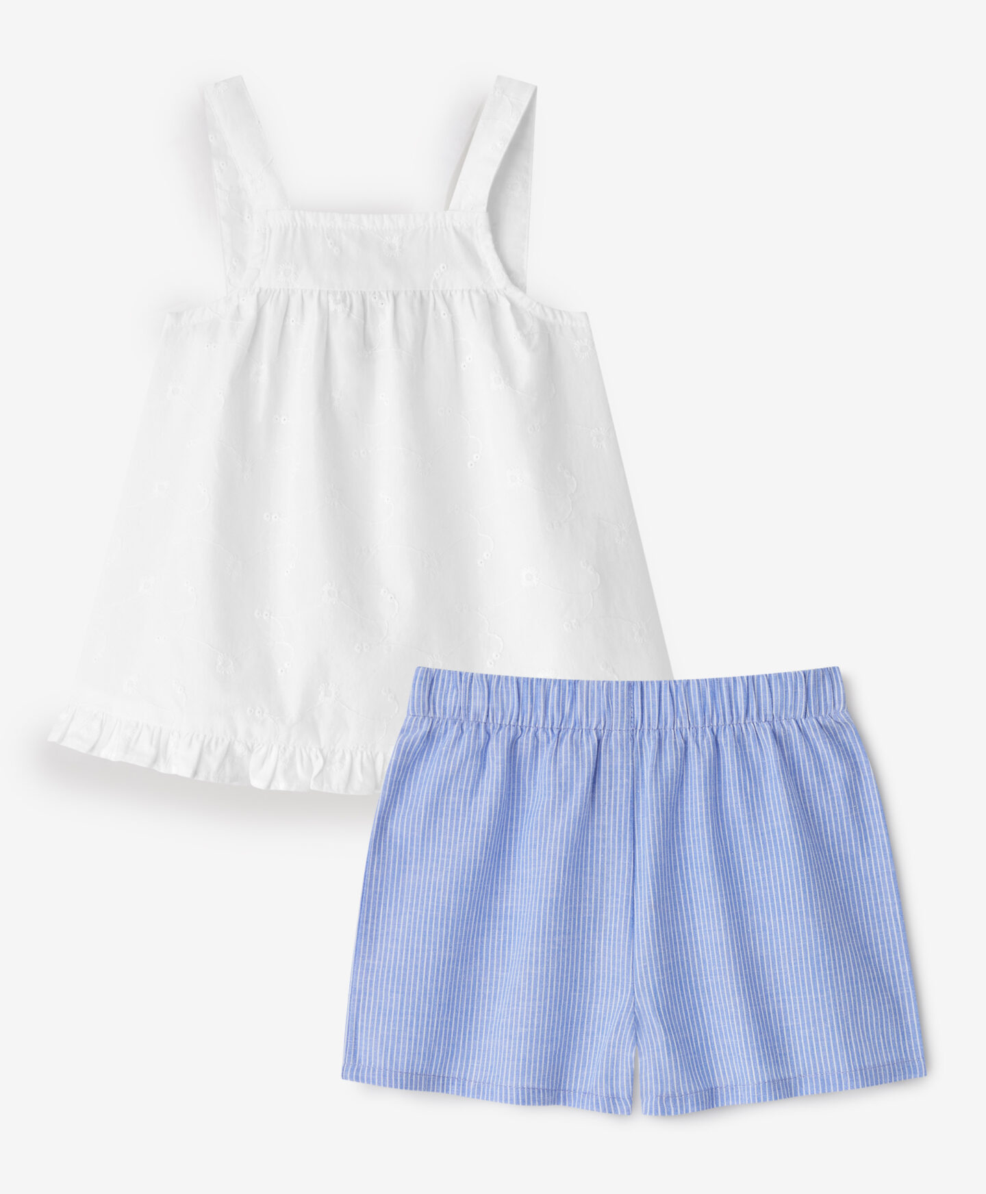 A 100% pamut együttes egy felsőből és egy szoknyanadrágból áll. A szoknyanadrág rugalmas derekának köszönhetően könnyedén és gyorsan öltöztetheted gyermekedet. Természetes anyaga pedig lágyan öleli körbe a kicsi érzékeny bőrét, rendkívüli kényelmet biztosítva még a legmelegebb napokon is.