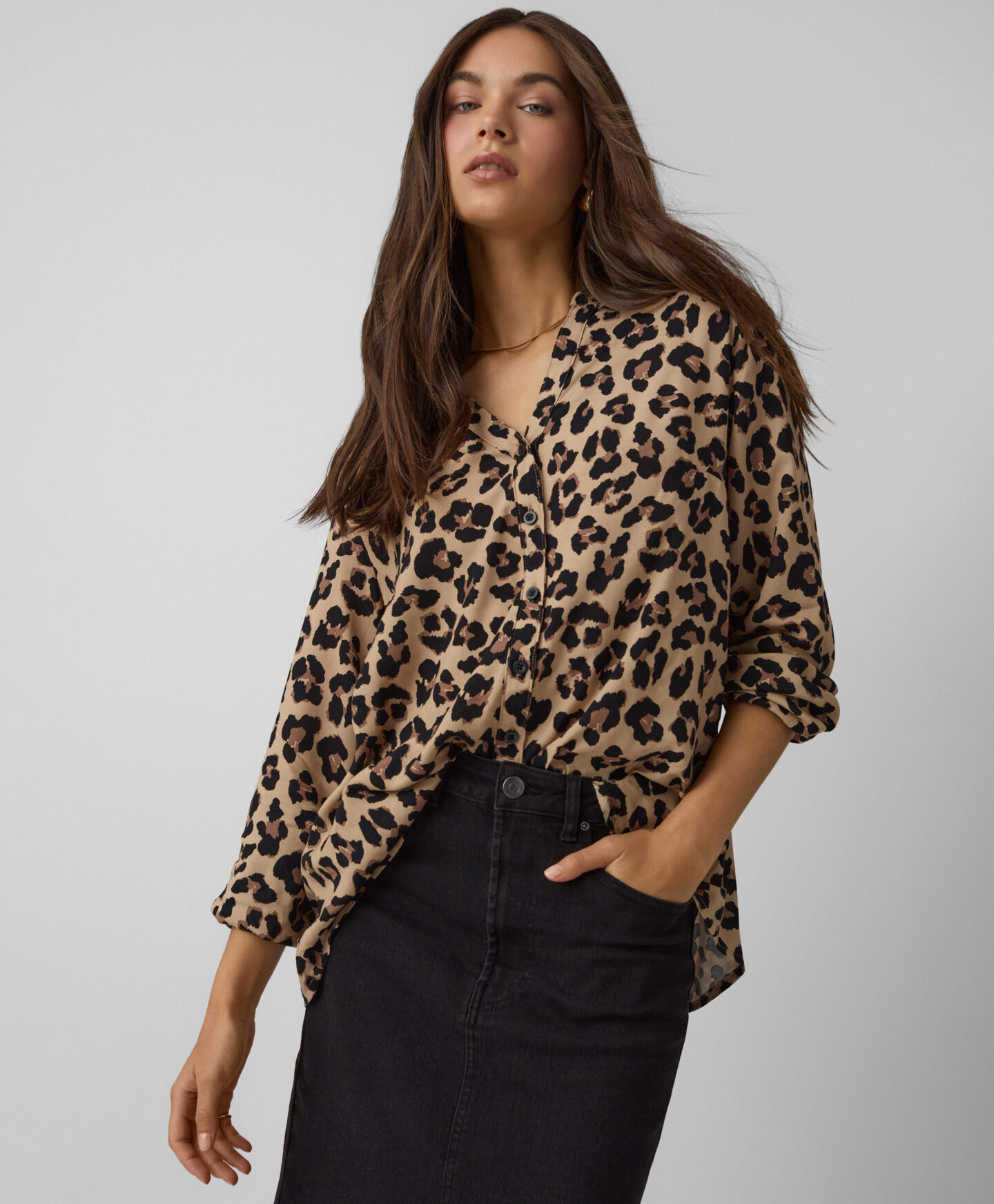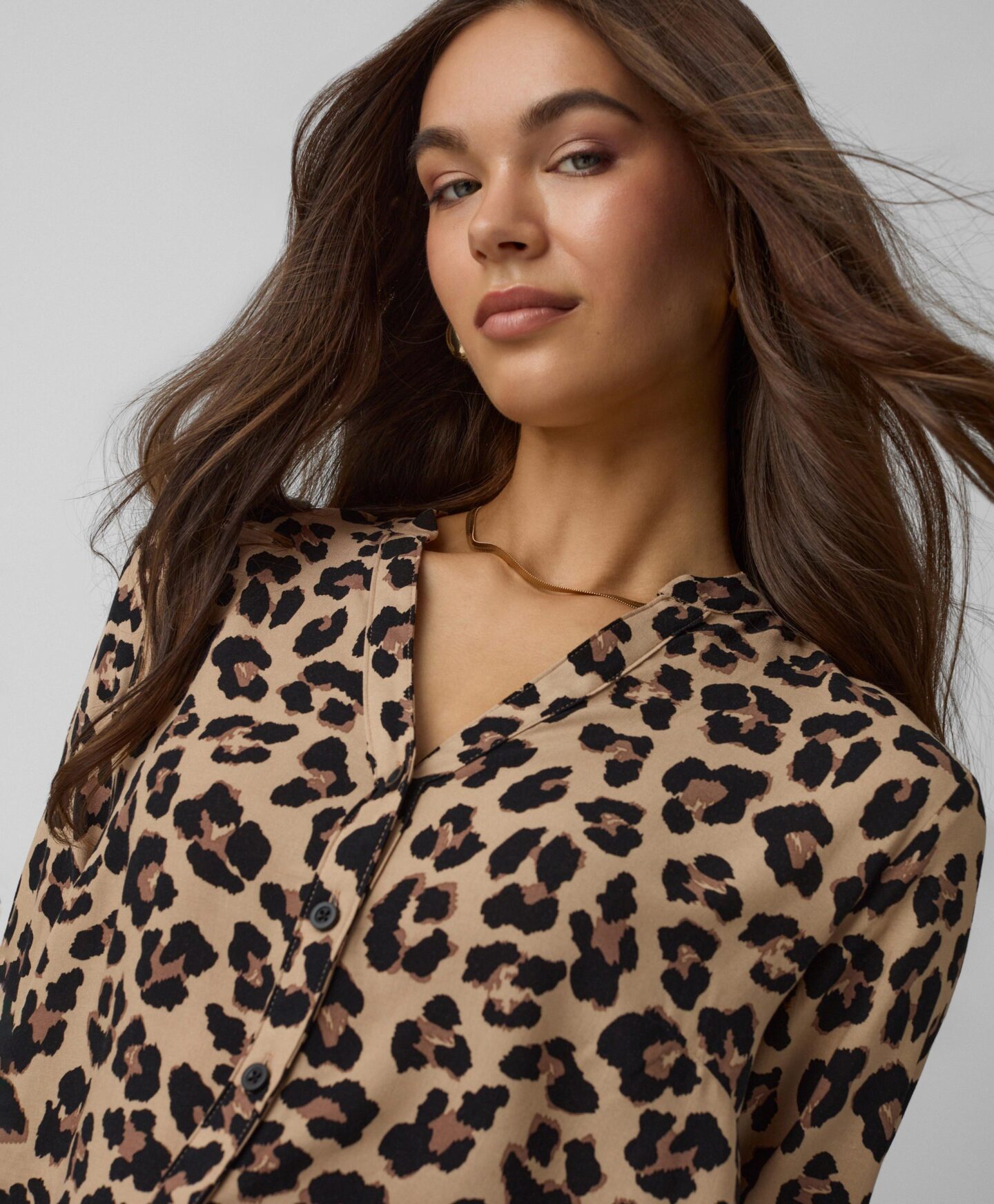 A 100% viszkóz blúz divatos darab lesz a gardróbodban. Könnyed, légies és légáteresztő anyagának, valamint különleges leopárd mintájának köszönhetően biztosan kitűnik majd a többi ruhadarab közül. Remek választás blézer alá, de melegebb napokon önmagában is viselhető.