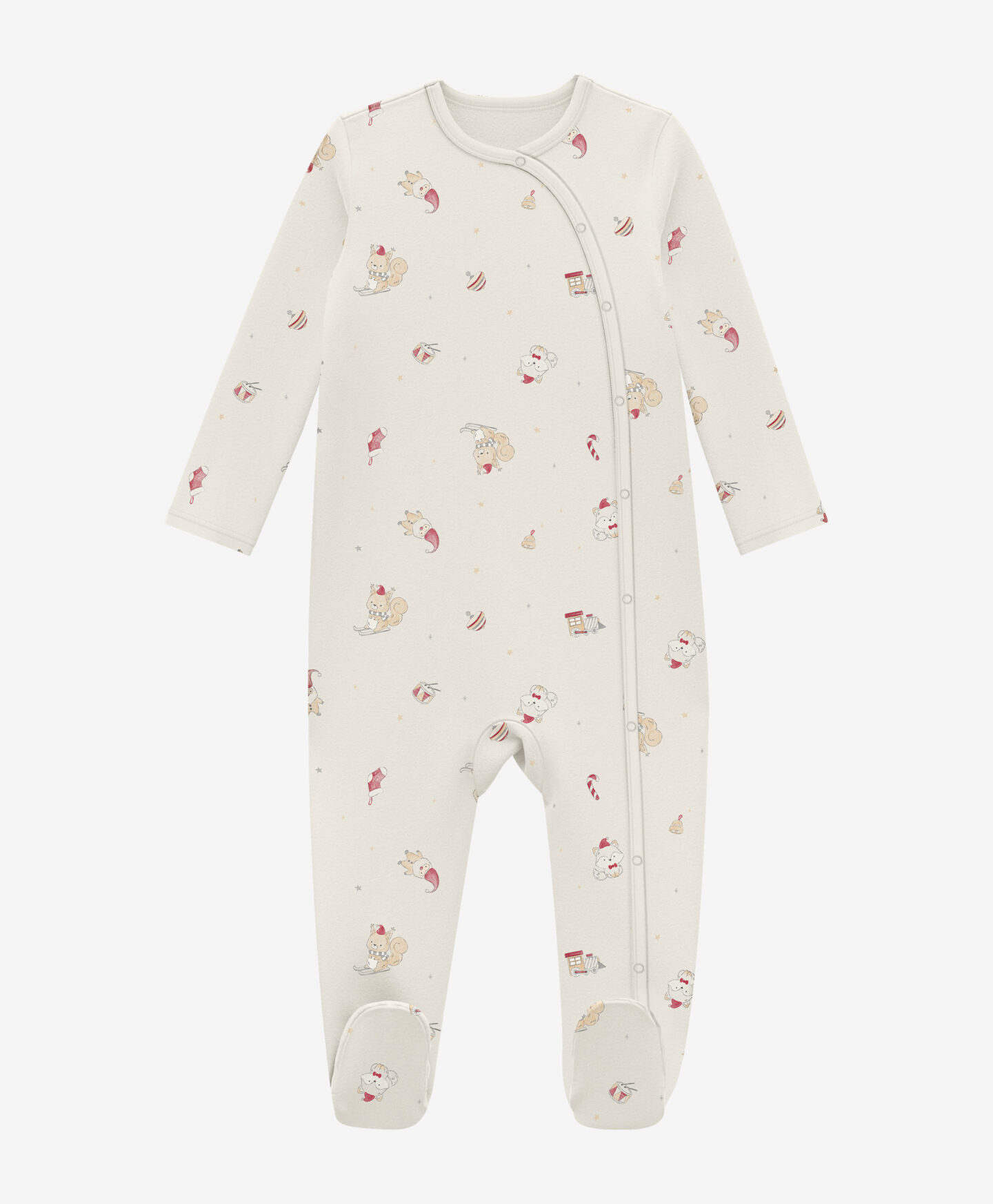 Ez a 2 darabos, 100% pamut kezeslábas szett hasznos darab kisfiúknak a téli szezonban. Puha anyaga kényelmet biztosít és kíméletes a gyermek érzékeny bőréhez. A karácsonyi motívumok bájt kölcsönöznek minden öltözéknek, és vidám hangulatot teremtenek, tökéletesen illenek a családi összejövetelekhez vagy karácsonyi fotózásokhoz. A patentok megkönnyítik a baba öltöztetését és pelenkacseréjét. A szett két különböző mintájú darabot tartalmaz.
