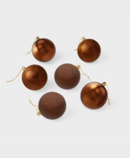 A barna 6 darabos karácsonyfadísz szett kiemeli karácsonyfád ünnepi hangulatát. Meleg árnyalatuk eleganciát kölcsönöz, és különösen meghitt légkört teremt. Klasszikus választás, amely mindig gyönyörűen mutat a zöld ágak között.