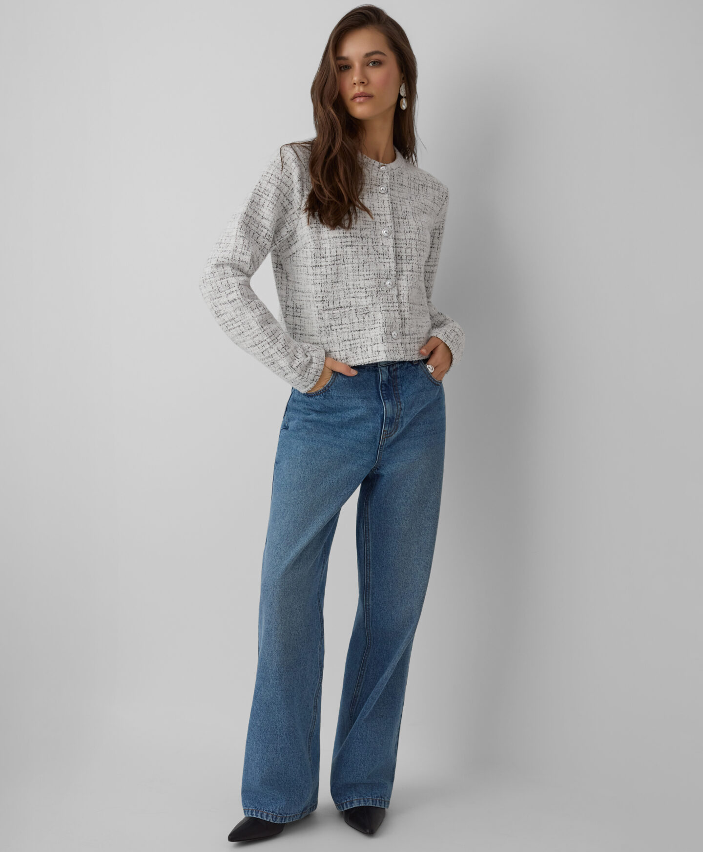 A csillogó gombok vonzzák a tekintetet, és kifinomult karaktert kölcsönöznek a blézernek, így könnyedén illeszkedik elegánsabb és hétköznapi összeállításokhoz is. Farmerrel és elegáns nadrággal egyaránt stílusosan kombinálható.