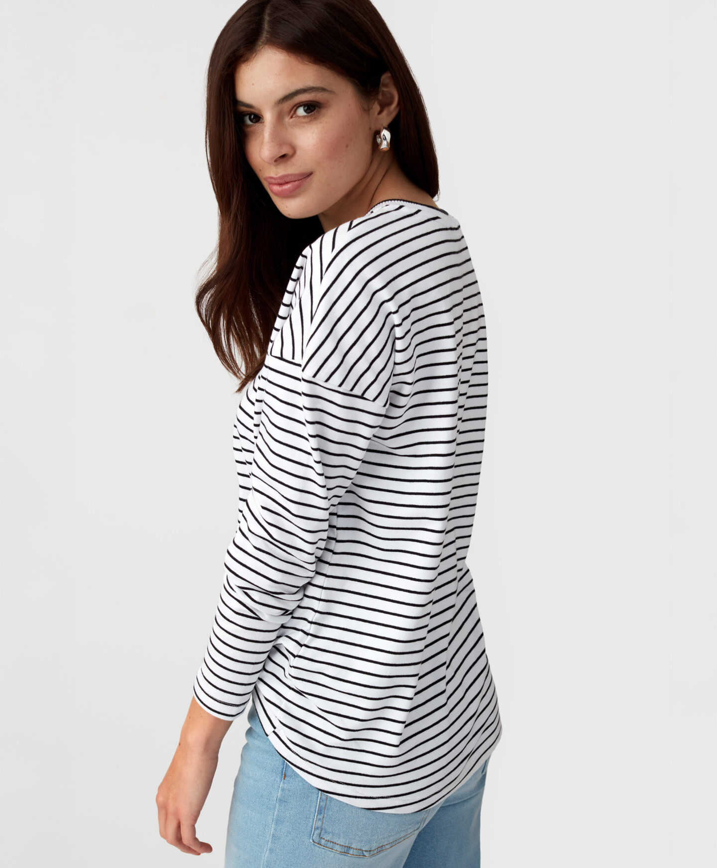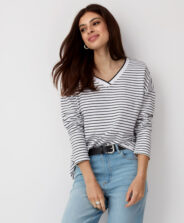 Magas pamuttartalmával ez a csíkos női felső a minőség és a kényelem megtestesítője. Univerzális szabása mindenkinek jól áll, legyen szó elegáns vagy hétköznapi viseletről.