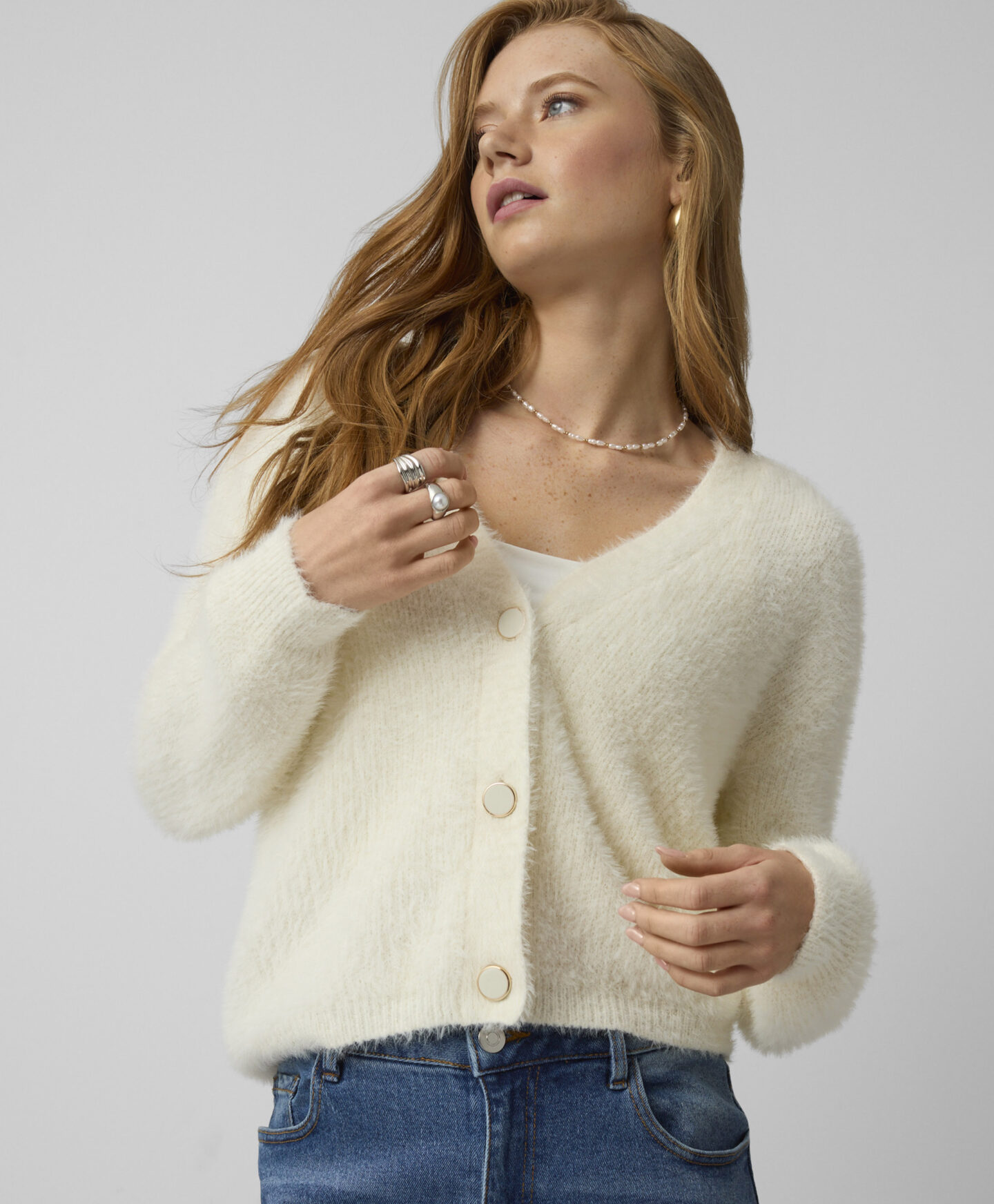 A fehér kardigán tökéletes választás a hidegebb napokra. A dekoratív gombok egy kis csavart adnak minden szetthez. Univerzális kialakításának köszönhetően számtalan más ruhadarabbal könnyedén kombinálható és egyaránt remek viselet munkába vagy esti programokra.