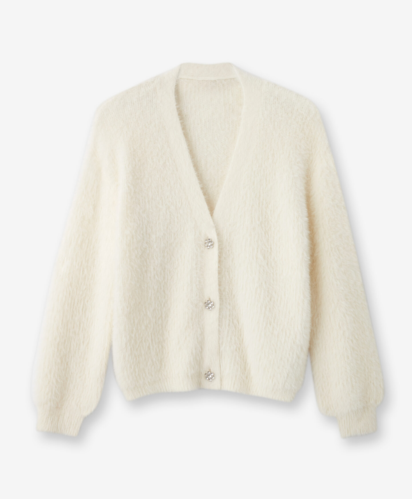 A fehér női kardigán díszgombokkal az idei tél sztárterméke! Puha, bolyhos anyaga kényelmet és meleget biztosít, míg az elegáns gombok eleganciát kölcsönöznek bármilyen összeállításnak. Ideális mindennapi viseletre, de elegánsabb alkalmakra is nagyszerű választás. Több színben is elérhető.