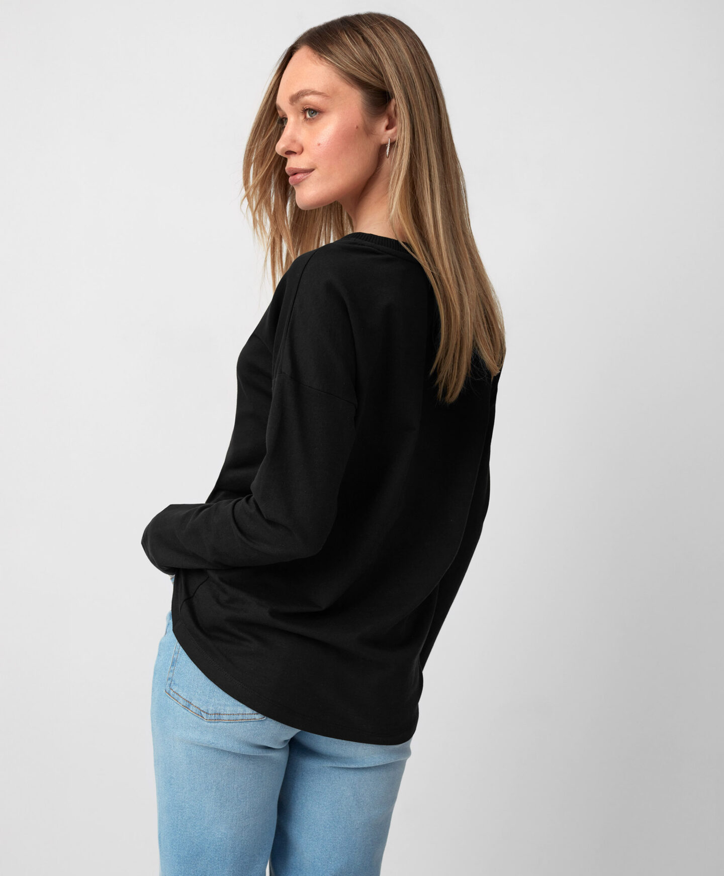 Magas pamuttartalmával ez a fekete női felső a minőség és a kényelem megtestesítője. Univerzális szabása mindenkinek jól áll, legyen szó elegáns vagy hétköznapi viseletről.