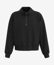 A fekete pulóver minden kényelemkedvelő nő ruhatárának alapdarabja. Kényelmes szabása mozgásszabadságot és teljes komfortot nyújt, cipzárja pedig jó szellőzést biztosít, felhúzva pedig kellemes gallért alkot a hűvösebb napokon. Tökéletes választás sétához vagy biciklizéshez is. A kínálatban a pulóverhez illő szabadidőnadrágot is megtalálod.