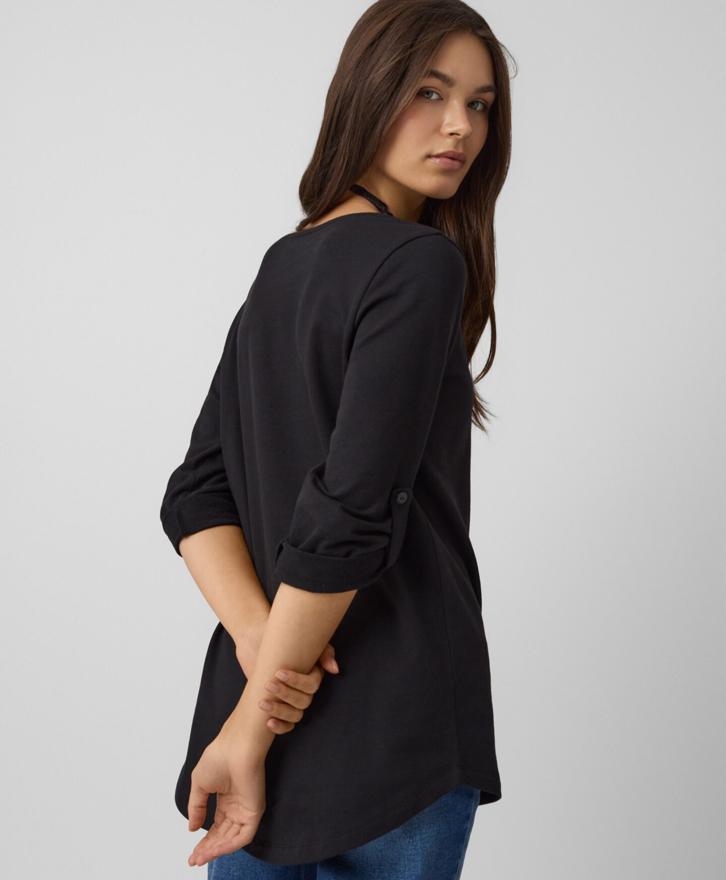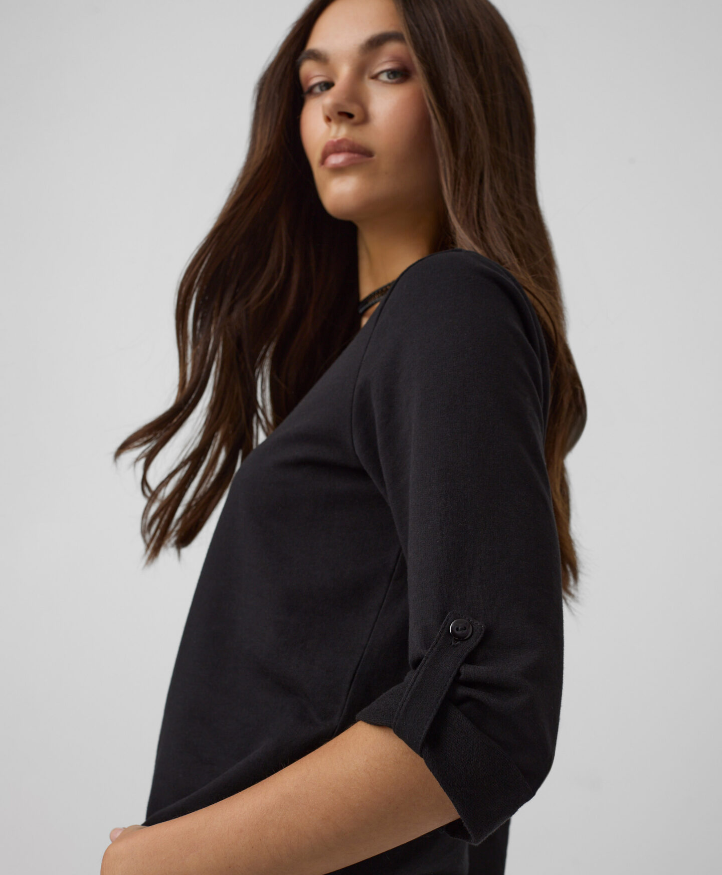 A felső felhajtott ujjakkal remek választás azoknak a nőknek, akik értékelik az eleganciát és a kényelmet egyaránt. Egyedi szabása egy kis bájt kölcsönöz a darabnak és kiemeli egyedi stílusodat. Magas pamuttartalmának köszönhetően légáteresztő és puha viselet.