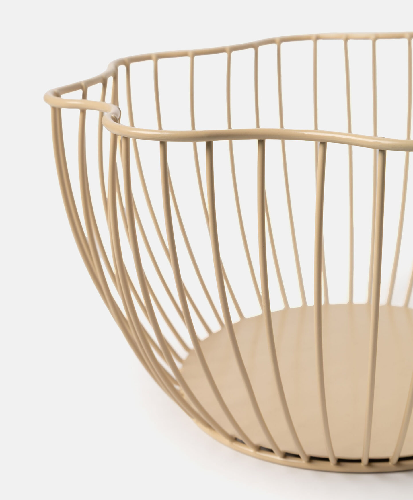 A virág formájú gyümölcsöskosár tartós vasból készült, így még teljesen megtöltve is megőrzi alakját. Az áttört kialakítás biztosítja a levegő áramlását, míg az egyedi forma igazán különlegessé teszi a teret.