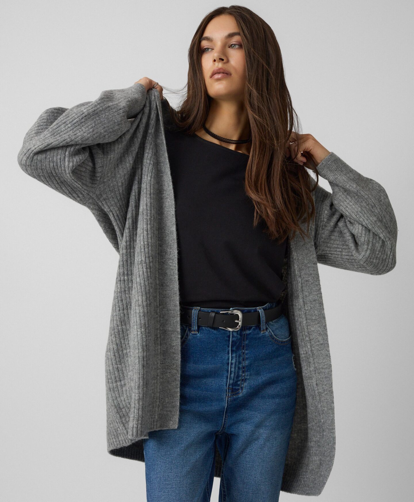 A hosszú, szürke kardigán nagyszerű választás bármilyen alkalomra. Nem csak melegen tart, hanem elegánsan is nézel ki benne a hidegebb napokon. Szinte bármilyen ruhadarabbal könnyen kombinálható – a ruháktól egészen a leggingsekig. Laza szabásának köszönhetően minden testalkaton jól mutat és kényelmet, valamint teljes mozgásszabadságot biztosít.