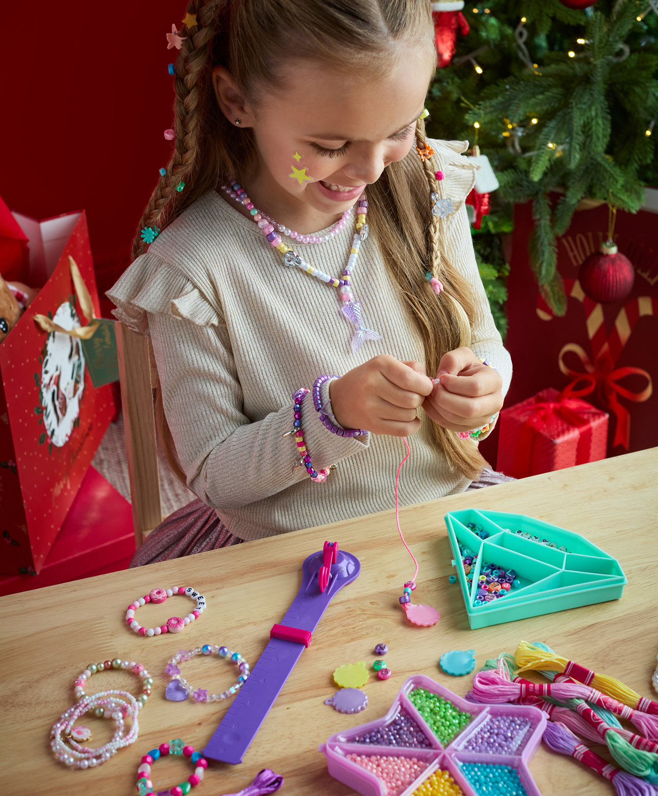 A karkötő készítő szett lehetővé teszi, hogy a gyerekek önállóan tervezzék meg és fűzzék fel a színes gyöngyöket saját ízlésük szerint. A praktikus bőröndben minden tartozék elfér, így könnyen rendszerezhető és utazásra is magukkal vihetik. A játék fejleszti a kézügyességet és serkenti a képzelőerőt.