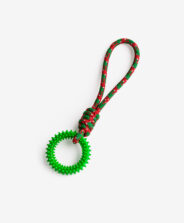 A kutyajáték gyűrűvel fonott kötélből és rugalmas gyűrűből áll. A gyűrű textúrája játékra és rágásra ösztönzi a kutyát, míg a másik oldalon található hurok ideális az aktív játékhoz. A különböző formák változatossá és izgalmassá teszik a játékot, így a kötél remekül leköti a kutyát otthon és a séták során is. Ennek köszönhetően a mindennapi játék is ünnepi hangulatot kap.