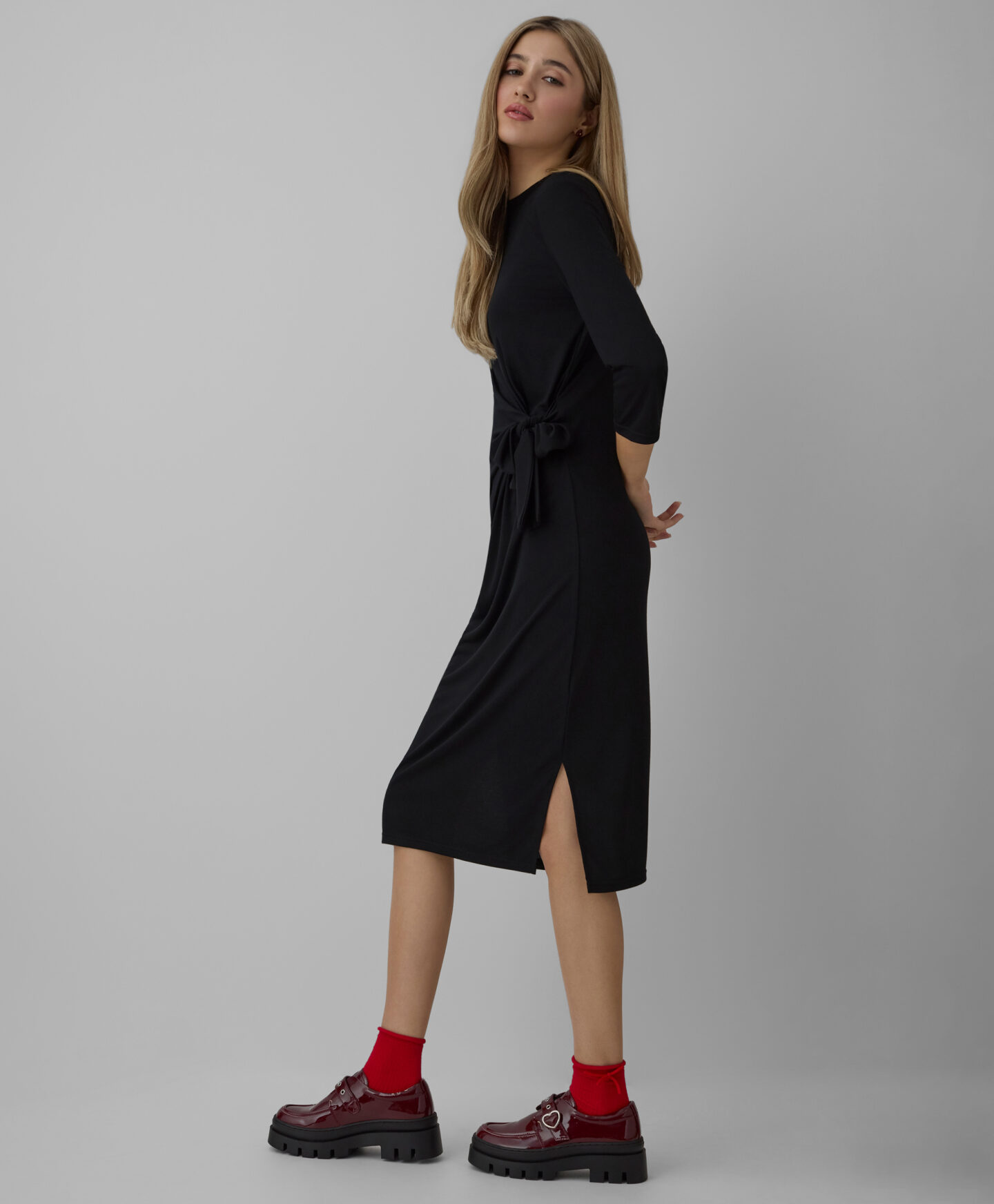 Tökéletes választás különleges alkalmakra. Klasszikus fekete színe időtlen eleganciát kölcsönöz minden megjelenésnek. Puha tapintású anyaga kellemes viseletet biztosít, miközben szépen kiemeli az alakot. Egyaránt remekül kombinálható elegáns magassarkú cipővel vagy platformos csizmával.