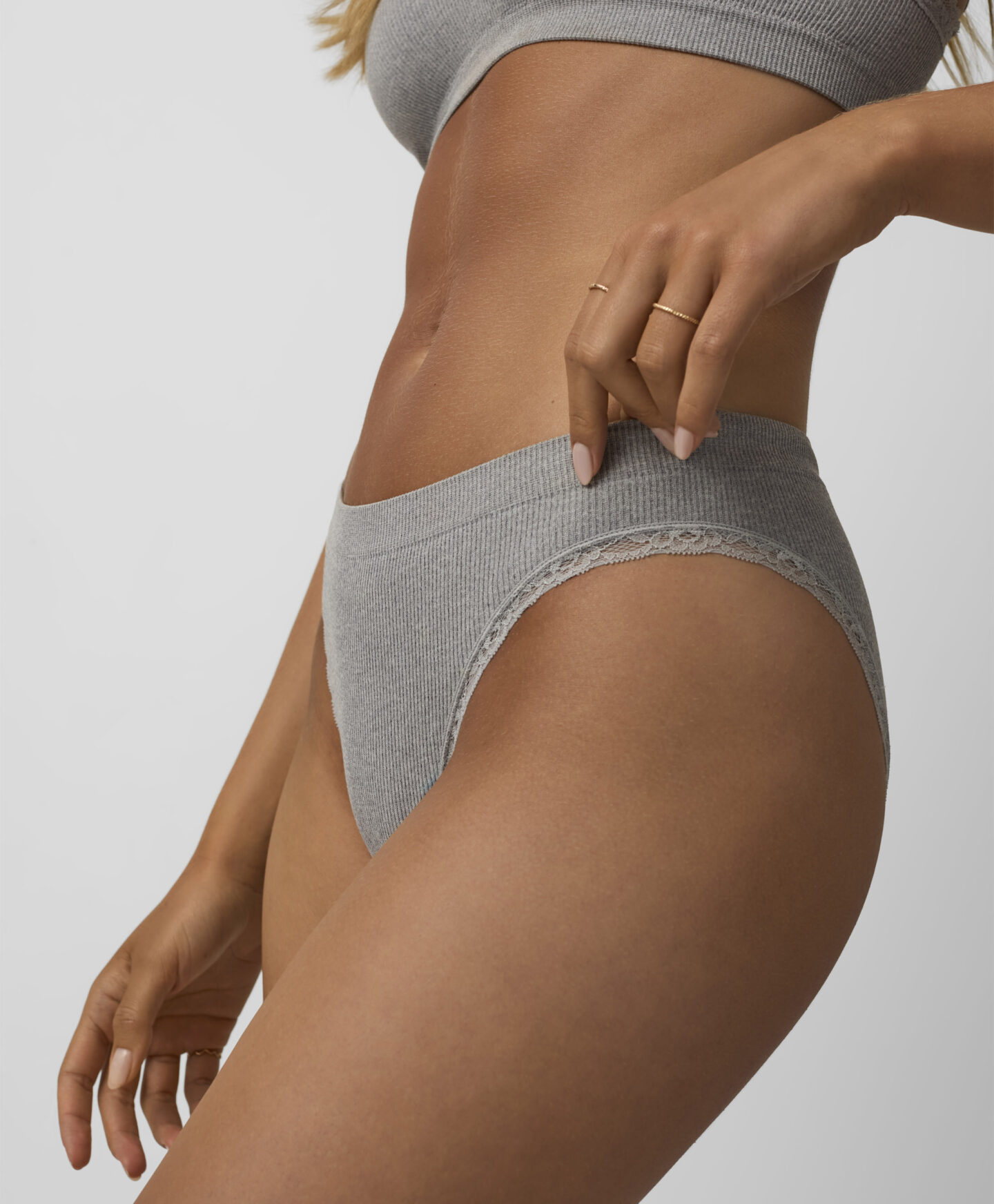 szürke 2 darabos alsónemű szett csipkével