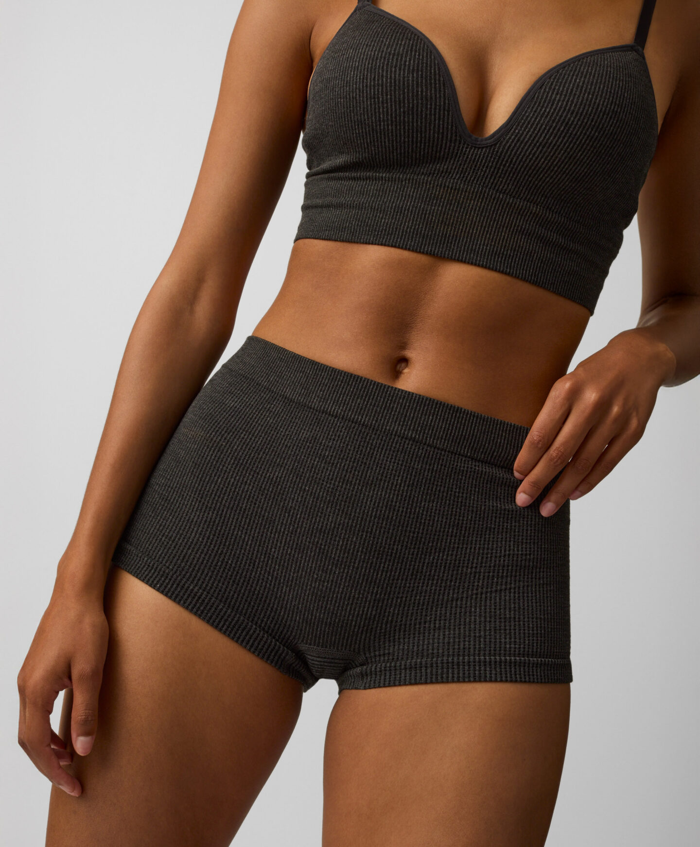 A szürke 2 darabos varrásmentes alsónemű szett nélkülözhetetlen darab a mindennapokra. Kialakítása nagyobb takarást biztosít, így minden helyzetben magabiztosan érezheted magad. Varrásmentes szabásának köszönhetően a legszűkebb ruhák alatt is láthatatlan marad. A kínálatban négyféle színben érhető el.