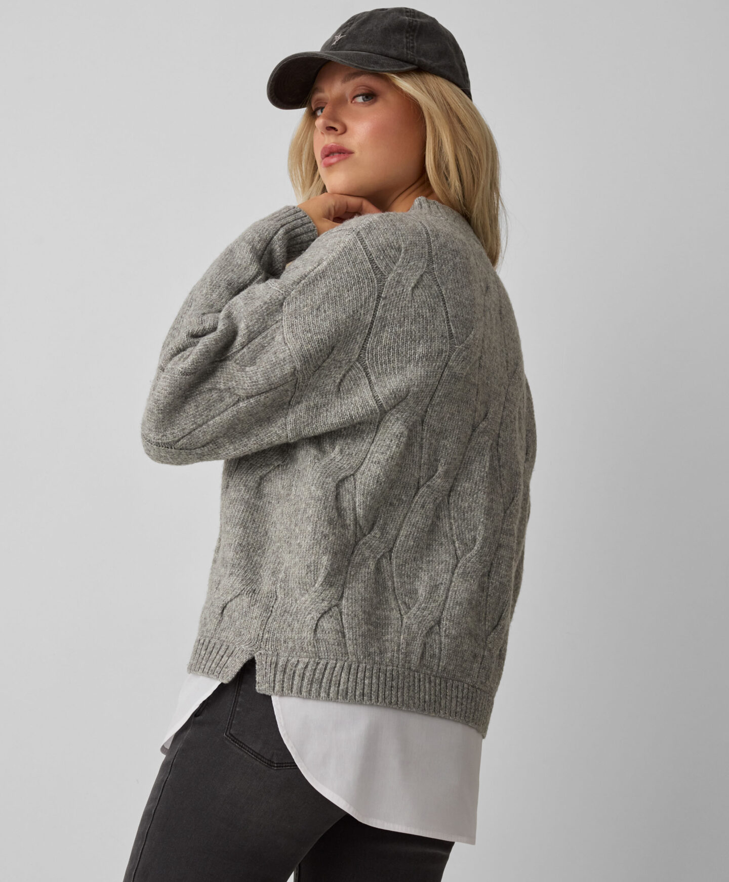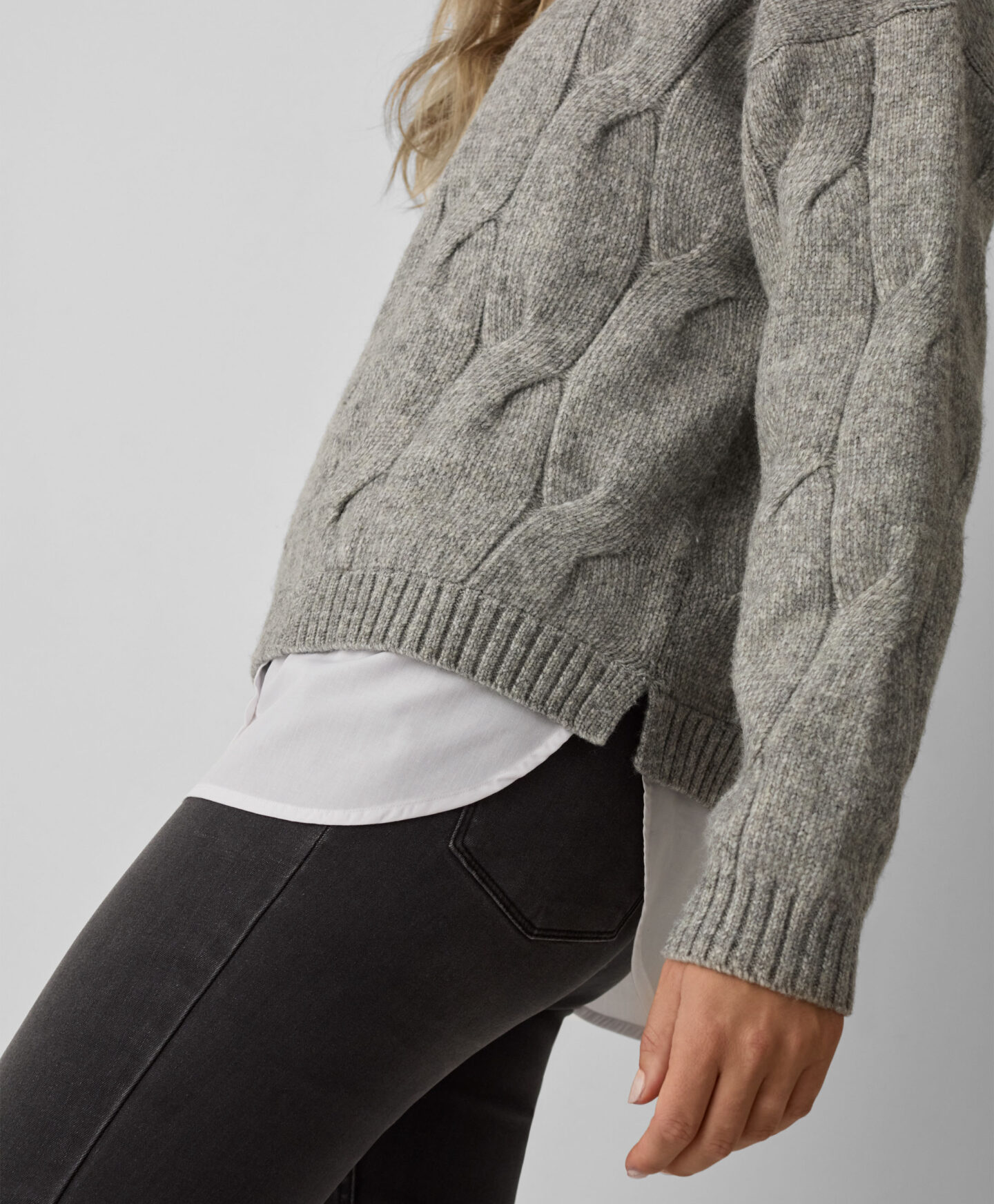 szürke pulóver nőknek blúzzal